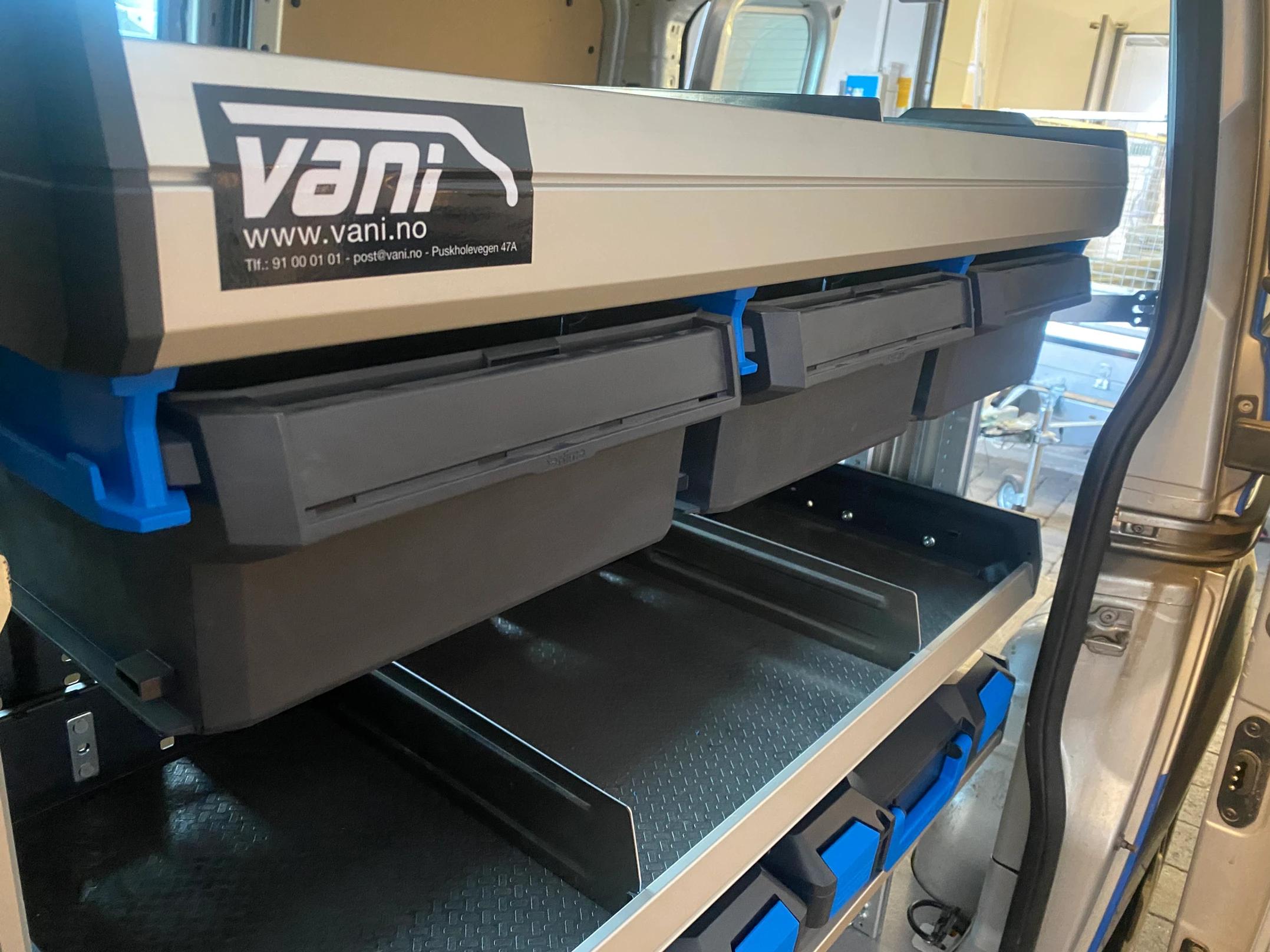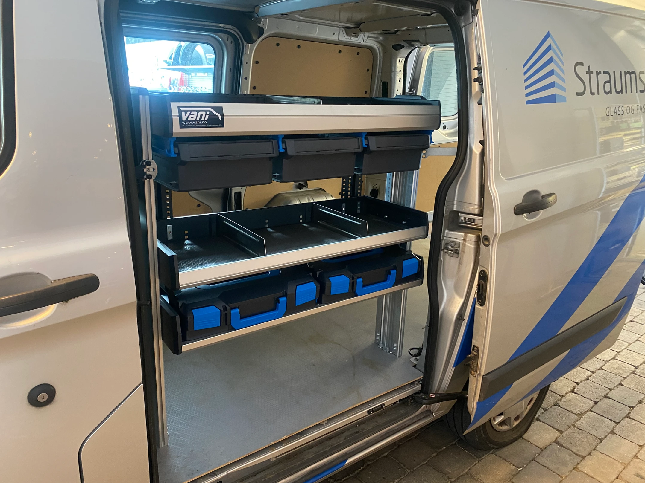 Da har Straumsheim Glass og Fasade AS fått seg en liten Sortimo SR5 reol ut skyvedøren.